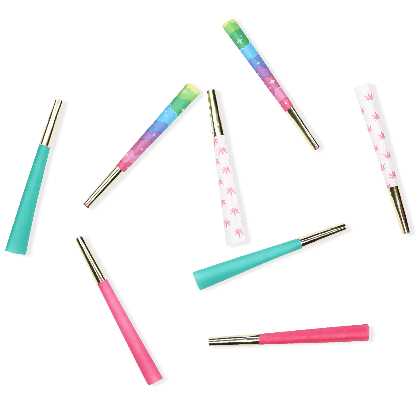No rolling skills needed! Simply fill and enjoy our pre-rolled cones, featuring vibrant colors and eye-catching designs that add a pop of personality to every sesh. Perfect for on-the-go moments and stylish living at home.